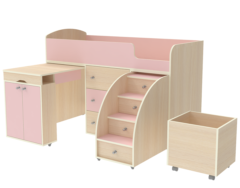 Кровать-чердак Малыш Дуб Молочный Розовый