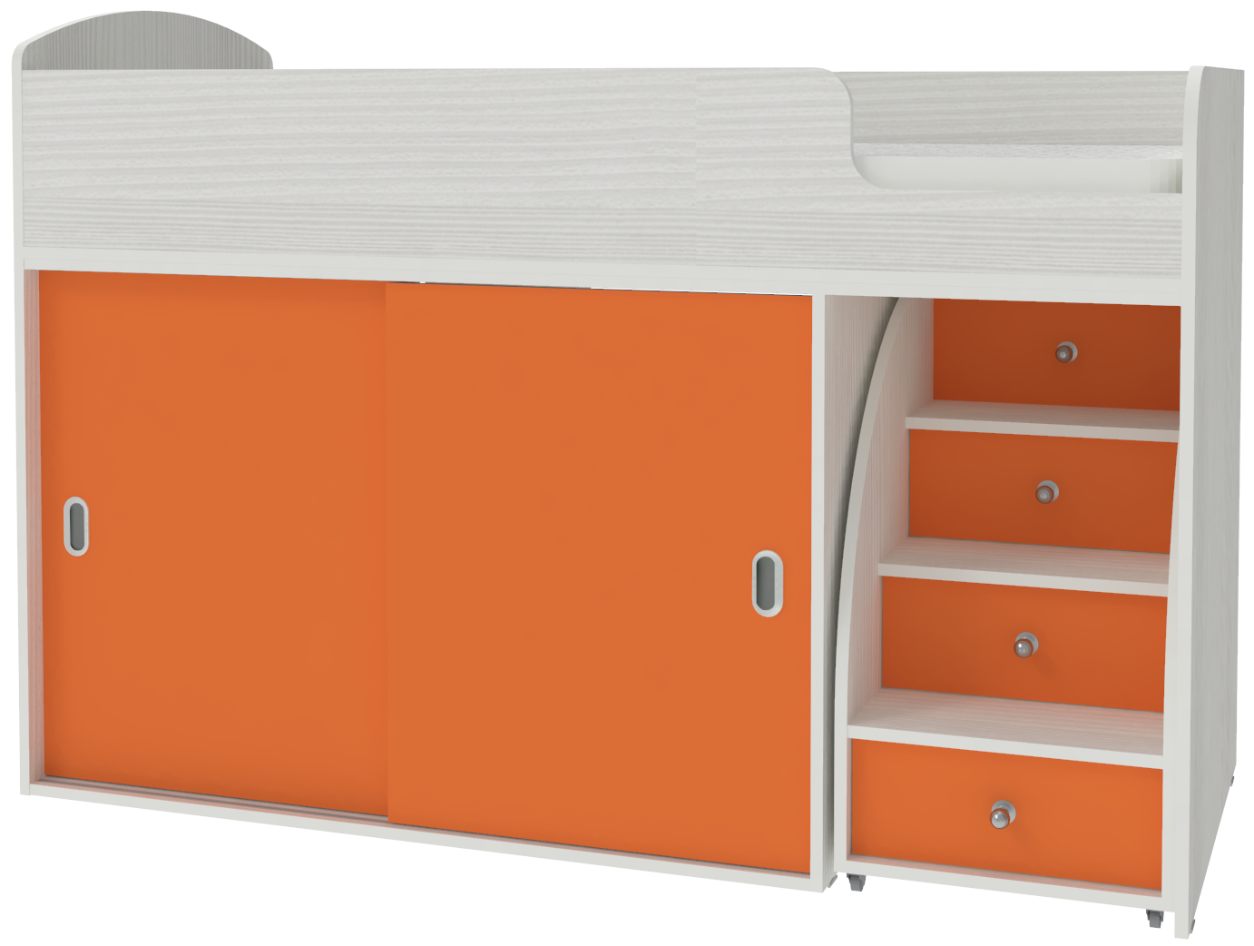 Кровать-чердак Малыш Купе Белое Дерево Оранжевый