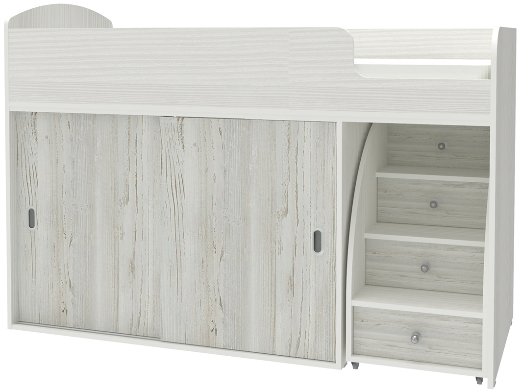 Кровать-чердак Малыш Купе Белое Дерево Винтерберг