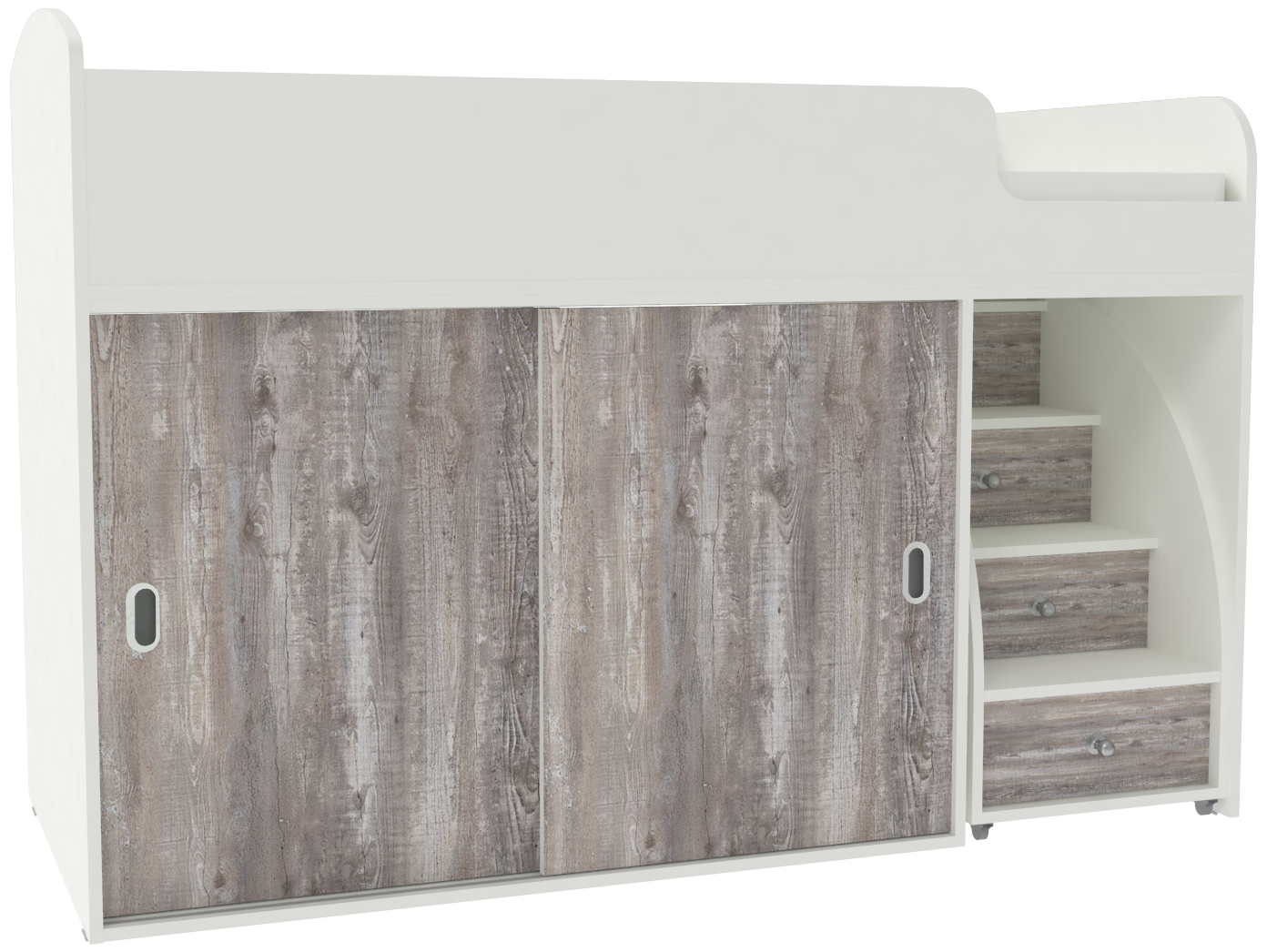 Вы можете купить Кровать-чердак КарИВи Малыш Купе Белый Бетон оптом в нашем магазине, предложим цену с оптовой скидкой.