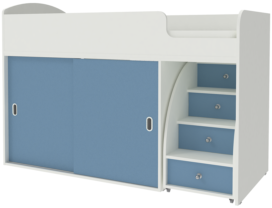 Кровать-чердак Малыш Купе Белый Светло-синий, голубой