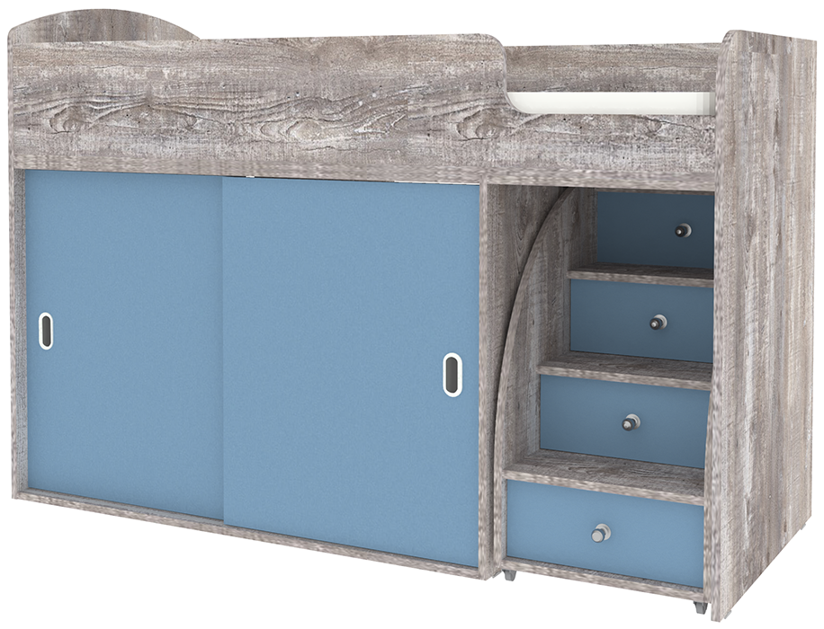 Кровать-чердак Малыш Купе Бетон Светло-синий, голубой