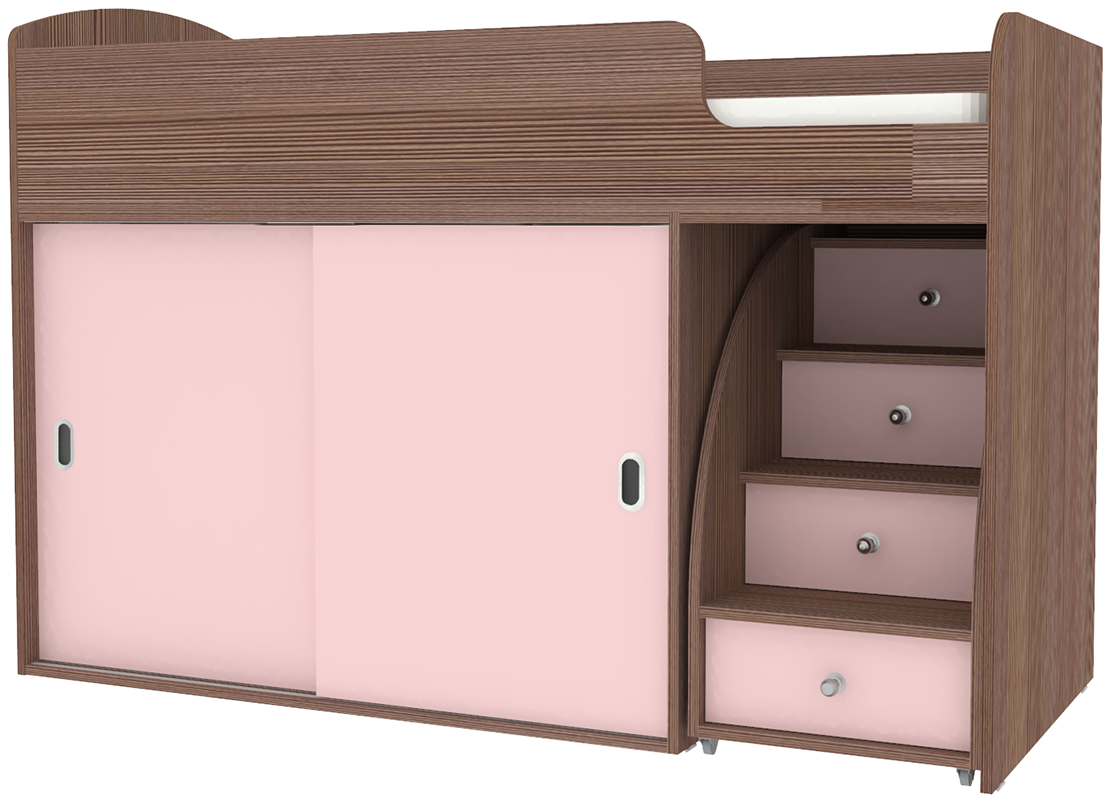 Кровать-чердак Малыш Купе Бодего Темный Розовый