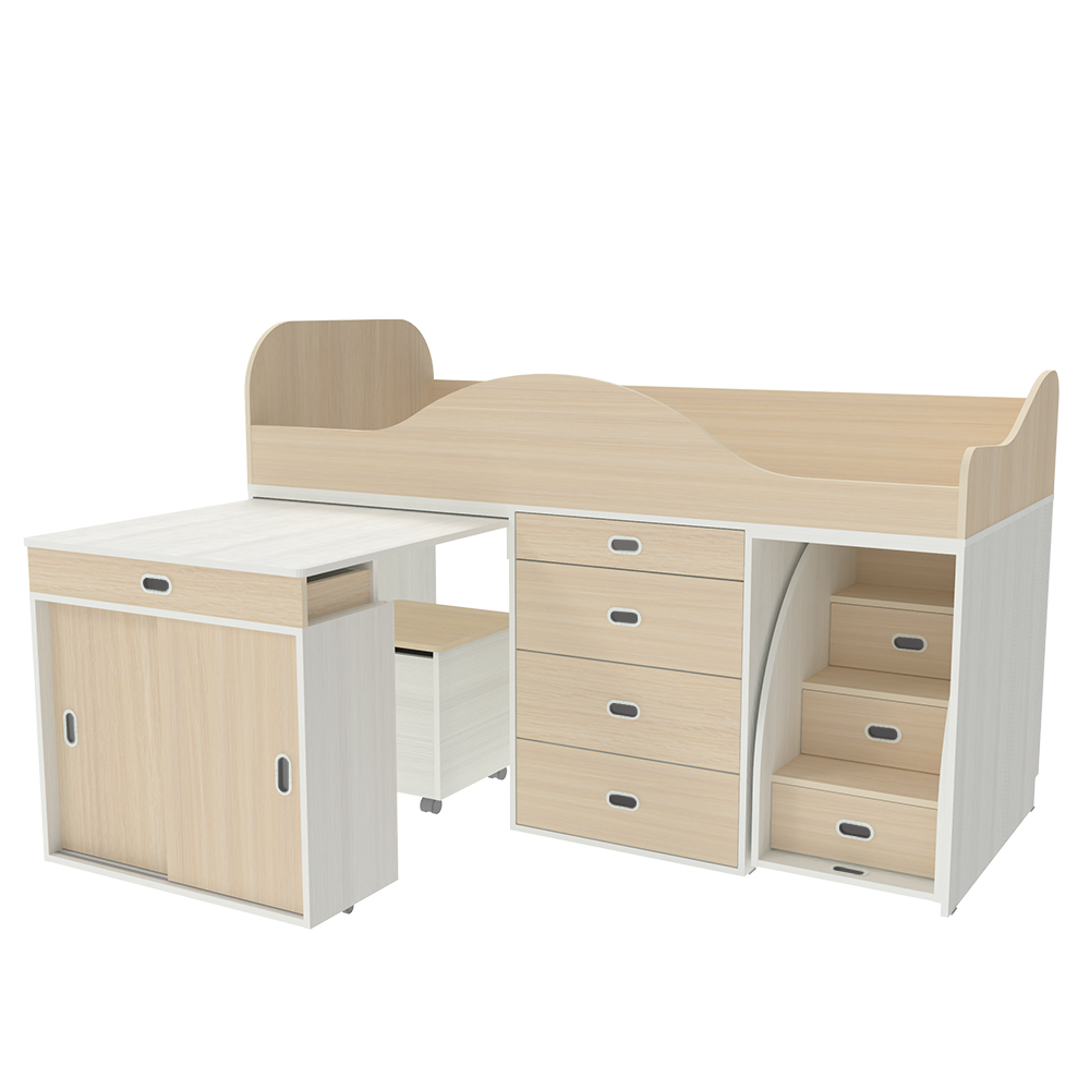 Кровать чердак Малыш Люкс - удобная кроватка, вместительный комод, выдвижной столик с ящиком и торцевым шкафом, а также удобная банкетка. Ящик для игрушек может использоваться как пуфик, он может выполнять функцию стульчика с мягким сидением в виде открывающейся крышки обтянутой практичной винилис кожей. Торцевой выдвижной ящик с разделителем секций для разнообразных мелочей. В передней части стола встроен вместительный шкафчик-купе с раздвижными дверцами. В верхнюю часть комода добавлен широкий и практичный ящик для письменных принадлежностей. На всех фасадах используются удобные пластиковые врезные ручки. Все выдвижные ящики на шариковых направляющих полного выдвижения. На цветных фасадах светло-бежевая кромка. Модель универсальна - сторона определяется при сборке. Матрасы в комплект не входят - приобретаются отдельно.Характеристики