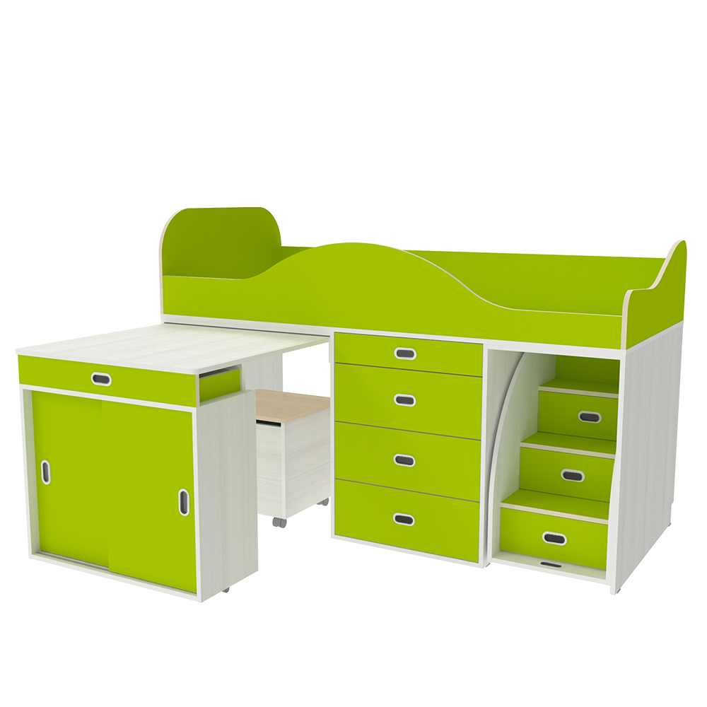 Кровать-чердак Малыш Люкс Белое Дерево Лайм