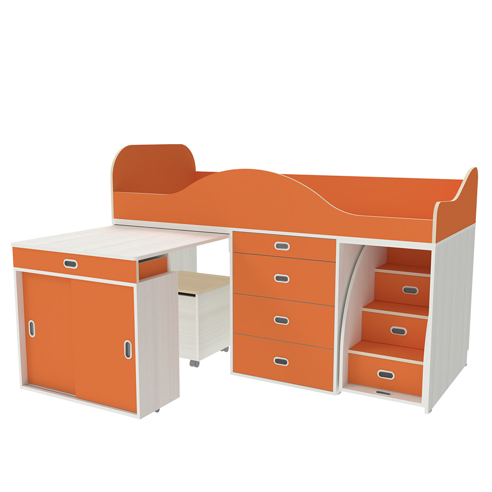 Кровать-чердак Малыш Люкс Белое Дерево Оранжевый