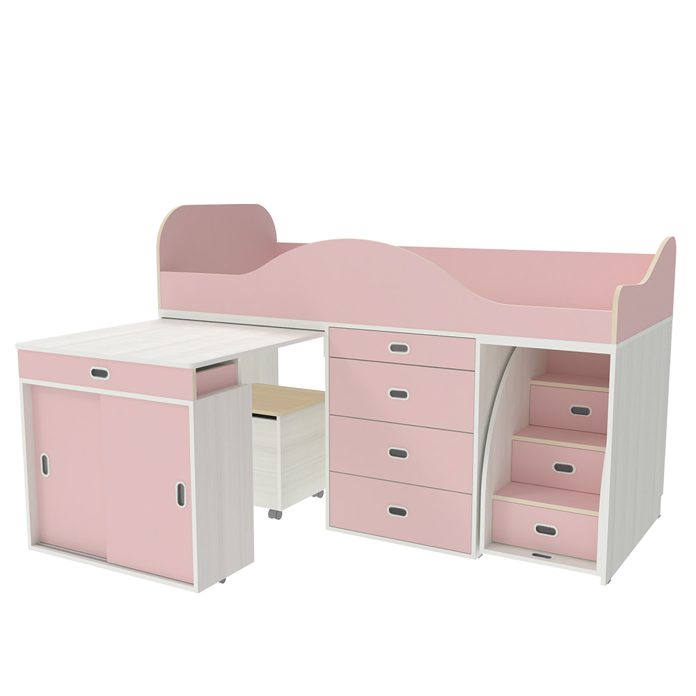 Кровать-чердак Малыш Люкс Белое Дерево Розовый