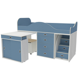 Кровать чердак Малыш Люкс - удобная кроватка, вместительный комод, выдвижной столик с ящиком и торцевым шкафом, а также удобная банкетка. Ящик для игрушек может использоваться как пуфик, он может выполнять функцию стульчика с мягким сидением в виде открывающейся крышки обтянутой практичной винилис кожей. Торцевой выдвижной ящик с разделителем секций для разнообразных мелочей. В передней части стола встроен вместительный шкафчик-купе с раздвижными дверцами. В верхнюю часть комода добавлен широкий и практичный ящик для письменных принадлежностей. На всех фасадах используются удобные пластиковые врезные ручки. Все выдвижные ящики на шариковых направляющих полного выдвижения. На цветных фасадах светло-бежевая кромка. Модель универсальна - сторона определяется при сборке. Матрасы в комплект не входят - приобретаются отдельно.Характеристики