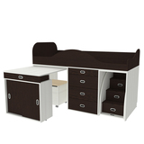 Кровать чердак Малыш Люкс - удобная кроватка, вместительный комод, выдвижной столик с ящиком и торцевым шкафом, а также удобная банкетка. Ящик для игрушек может использоваться как пуфик, он может выполнять функцию стульчика с мягким сидением в виде открывающейся крышки обтянутой практичной винилис кожей. Торцевой выдвижной ящик с разделителем секций для разнообразных мелочей. В передней части стола встроен вместительный шкафчик-купе с раздвижными дверцами. В верхнюю часть комода добавлен широкий и практичный ящик для письменных принадлежностей. На всех фасадах используются удобные пластиковые врезные ручки. Все выдвижные ящики на шариковых направляющих полного выдвижения. На цветных фасадах светло-бежевая кромка. Модель универсальна - сторона определяется при сборке. Матрасы в комплект не входят - приобретаются отдельно.Характеристики