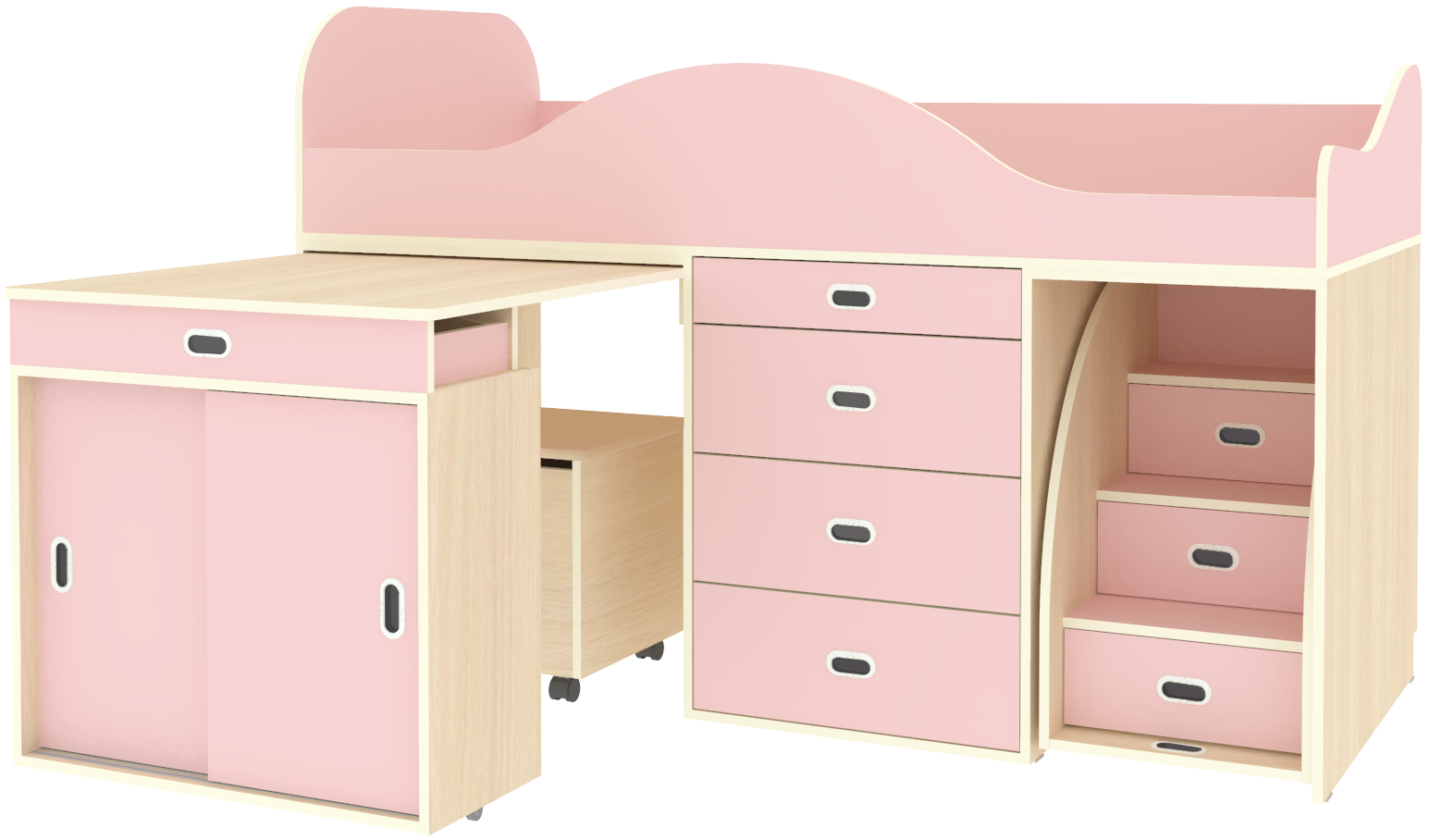Кровать-чердак Малыш Люкс Дуб Молочный Розовый