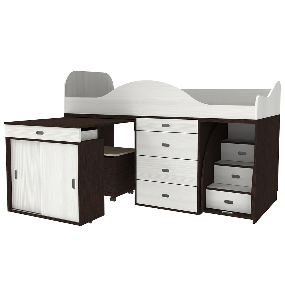 Кровать-чердак Малыш Люкс Венге Белое Дерево