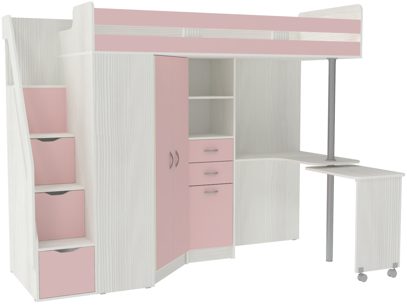 Вы можете купить Кровать-чердак КарИВи Мийа Белое Дерево Розовый оптом в нашем магазине, предложим цену с оптовой скидкой.