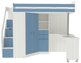 Кровать-чердак Мийа Белое Дерево Светло-синий, голубой