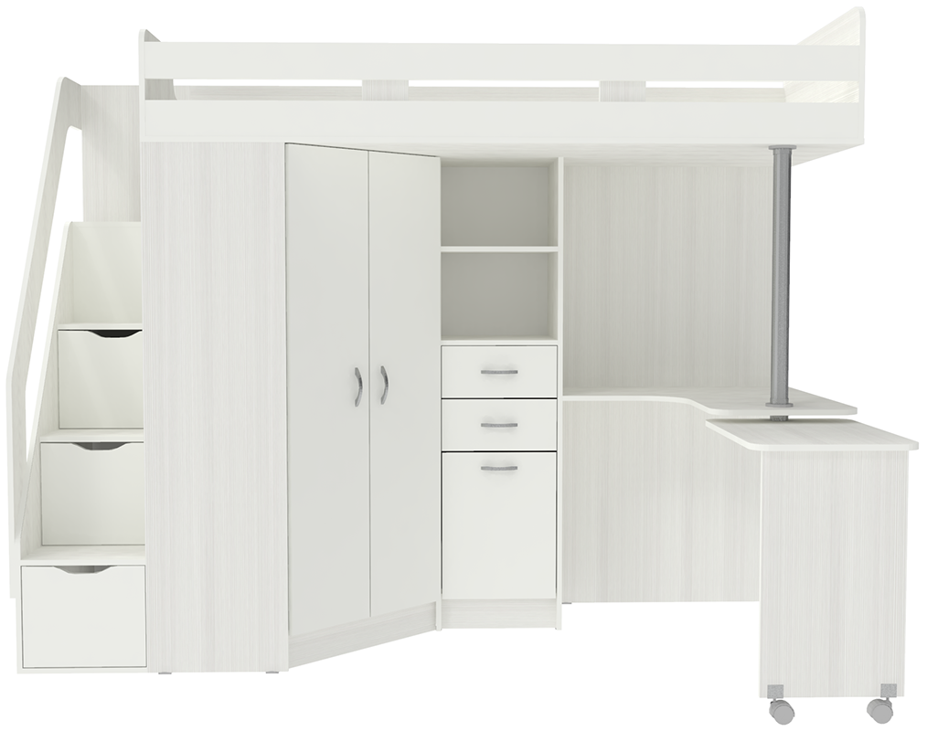 Кровать-чердак Мийа Люкс Белое Дерево Белый