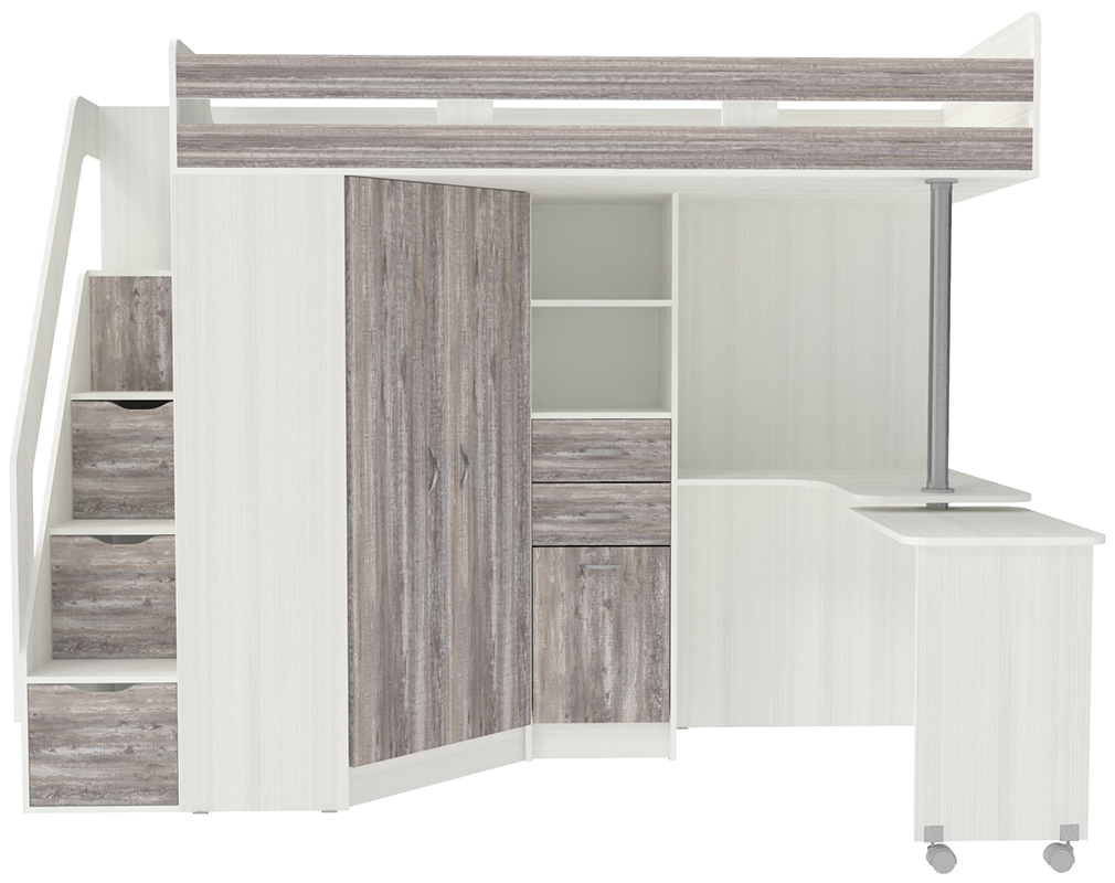 Кровать-чердак Мийа Люкс Белое Дерево Бетон