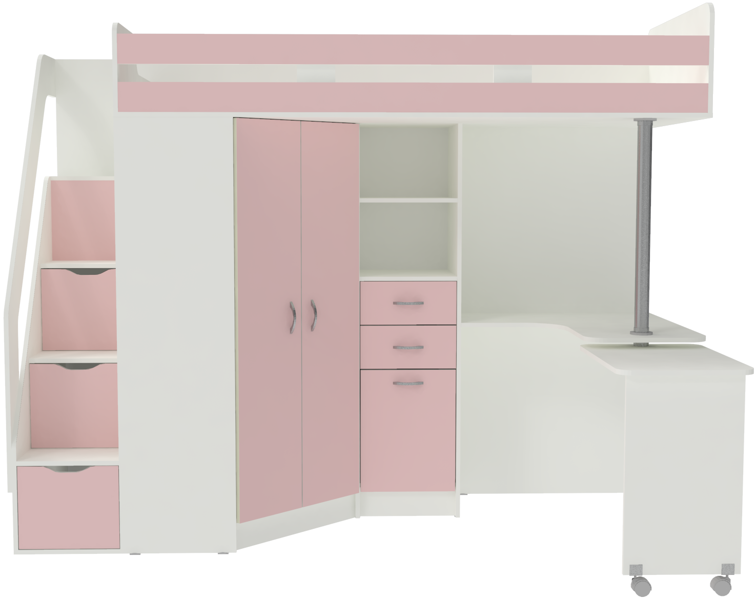 Кровать-чердак Мийа Люкс Белый Розовый