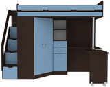 Кровать-чердак Мийа Венге Светло-синий, голубой