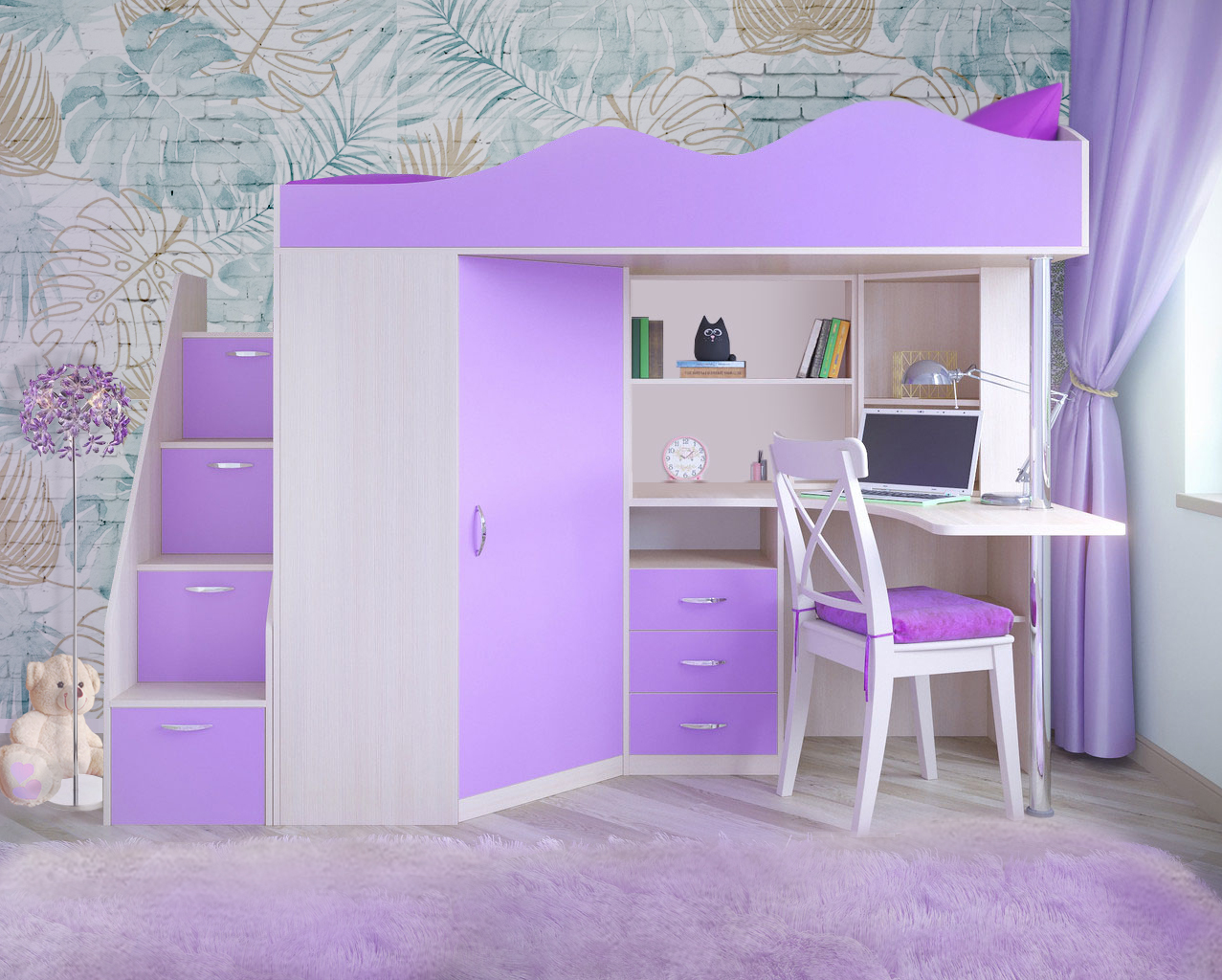 Вы можете купить Кровать-чердак КарИВи Пионер Белое Дерево Ирис оптом в нашем магазине, предложим цену с оптовой скидкой.