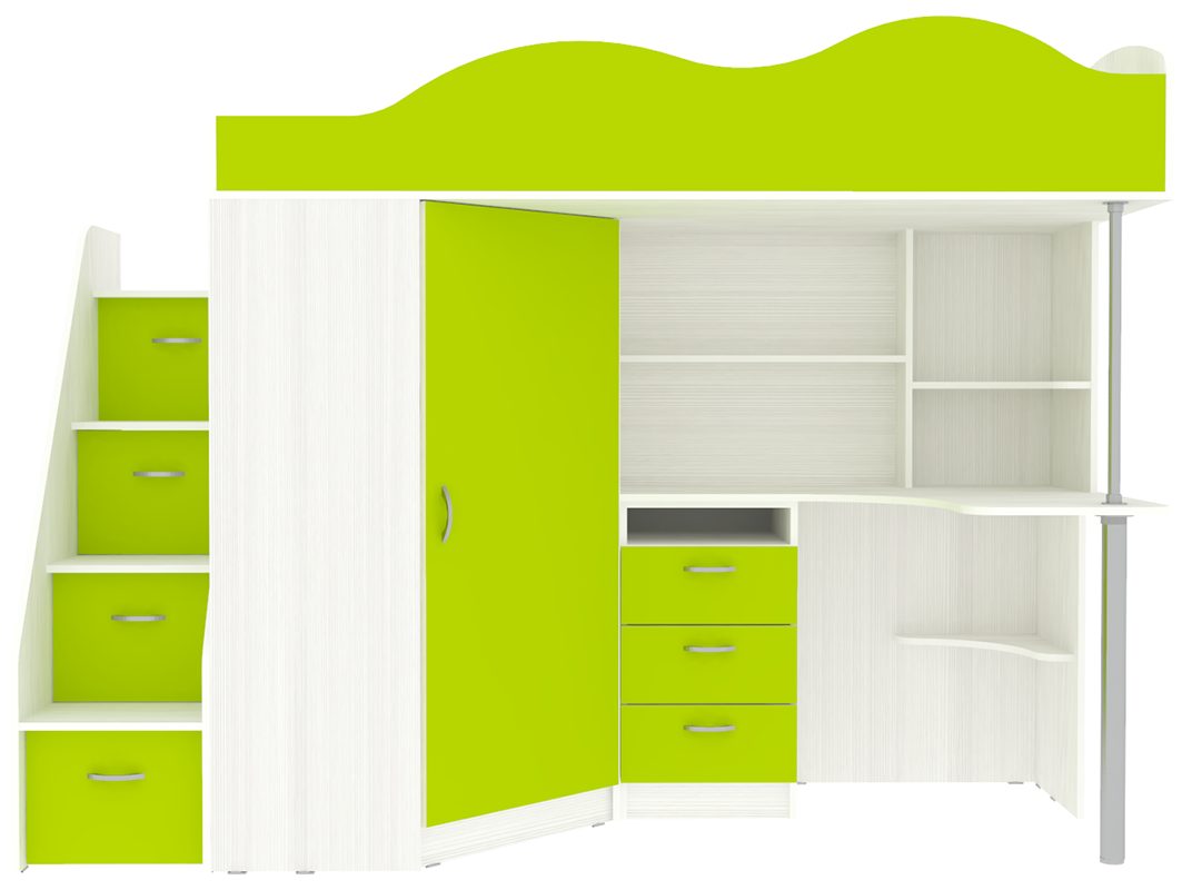 Кровать-чердак Пионер Белое Дерево Лайм