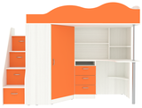 Кровать-чердак Пионер Белое Дерево Оранжевый