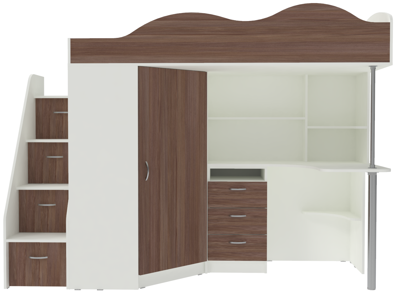 Кровать-чердак Пионер Белый Бодего Темный