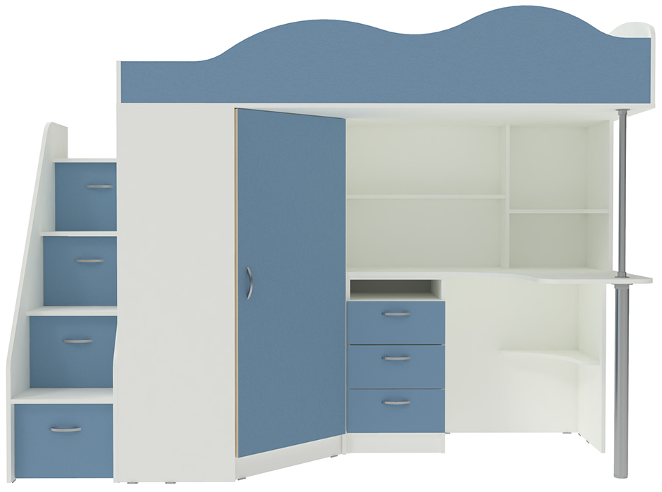 Кровать-чердак Пионер Белый Светло-синий, голубой