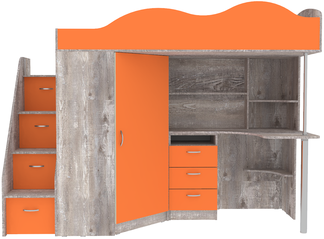 Кровать-чердак Пионер Бетон Оранжевый