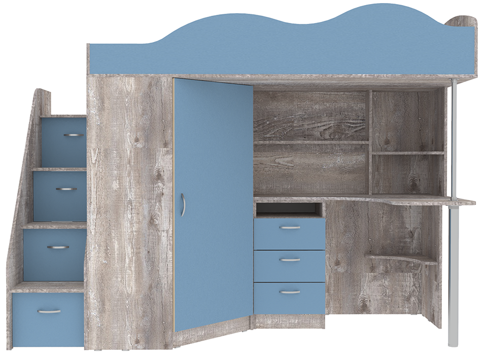Кровать-чердак Пионер Бетон Светло-синий, голубой