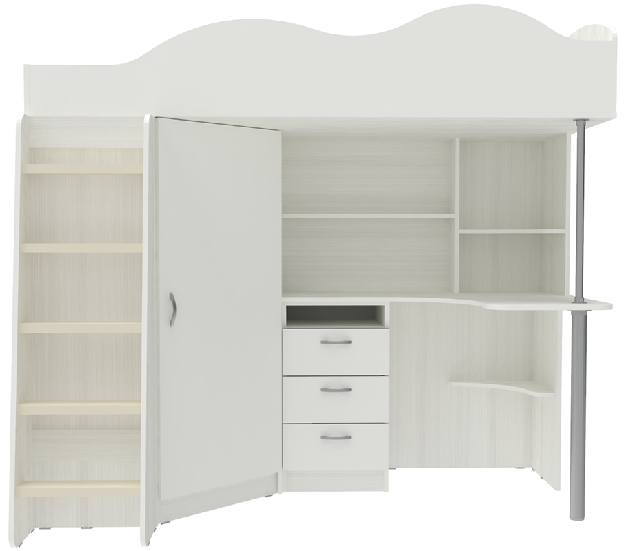 Кровать чердак Пионер включает в себя: Компьютерный стол с множеством стеллажей Тумба с ящиками для письменных принадлежностей Небольшой, но глубокий шкафчик для одежды и обуви, стоящий под углом оснащён перекладиной для вешалок и полочками Деревянная лестница Бортик среднего размера, сделанный в форме волн, защитит ребёнка от случайных падений Качественные материалы и удачная комбинация цвета фасадов и основной конструкции, обеспечат безопасность, долговечность и сохранят привлекательный внешний вид. Сборка универсальная. Матрасы в стоимость не входят.Ваш ребенок по достоинству оценит комфорт, который несет вам кровать-чердак с рабочей зоной Пионер. Кровать чердак Пионер- это удобная и компактная мини детская комната для Вашего ребенка со спальным местом наверху и рабочей зоной внизу. Матрас для кровати вы можете приобрести отдельно в разделедетских матрасов.. на цветных фасадах светло-бежевая кромка. *Предприятие-изготовитель оставляет за собой право вносить изменения в конструкцию изделия с целью улучшения технологических и эксплутационных свойств мебели. *Ограничение по нагрузке на лестницу до 75 кг.