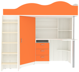 Вы можете купить Кровать-чердак КарИВи Пионер с деревянной лестницей Белое Дерево Оранжевый оптом в нашем магазине, предложим цену с оптовой скидкой.