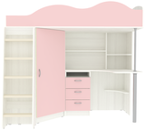 Вы можете купить Кровать-чердак КарИВи Пионер с деревянной лестницей Белое Дерево Розовый оптом в нашем магазине, предложим цену с оптовой скидкой.