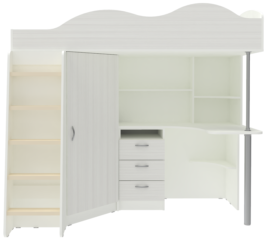 Кровать чердак Пионер включает в себя: Компьютерный стол с множеством стеллажей Тумба с ящиками для письменных принадлежностей Небольшой, но глубокий шкафчик для одежды и обуви, стоящий под углом оснащён перекладиной для вешалок и полочками Деревянная лестница Бортик среднего размера, сделанный в форме волн, защитит ребёнка от случайных падений Качественные материалы и удачная комбинация цвета фасадов и основной конструкции, обеспечат безопасность, долговечность и сохранят привлекательный внешний вид. Сборка универсальная. Матрасы в стоимость не входят.Ваш ребенок по достоинству оценит комфорт, который несет вам кровать-чердак с рабочей зоной Пионер. Кровать чердак Пионер- это удобная и компактная мини детская комната для Вашего ребенка со спальным местом наверху и рабочей зоной внизу. Матрас для кровати вы можете приобрести отдельно в разделедетских матрасов.. на цветных фасадах светло-бежевая кромка. *Предприятие-изготовитель оставляет за собой право вносить изменения в конструкцию изделия с целью улучшения технологических и эксплутационных свойств мебели. *Ограничение по нагрузке на лестницу до 75 кг.