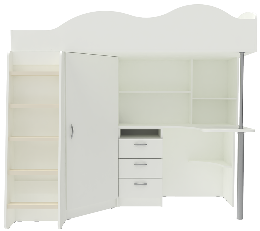 Кровать чердак Пионер включает в себя: Компьютерный стол с множеством стеллажей Тумба с ящиками для письменных принадлежностей Небольшой, но глубокий шкафчик для одежды и обуви, стоящий под углом оснащён перекладиной для вешалок и полочками Деревянная лестница Бортик среднего размера, сделанный в форме волн, защитит ребёнка от случайных падений Качественные материалы и удачная комбинация цвета фасадов и основной конструкции, обеспечат безопасность, долговечность и сохранят привлекательный внешний вид. Сборка универсальная. Матрасы в стоимость не входят.Ваш ребенок по достоинству оценит комфорт, который несет вам кровать-чердак с рабочей зоной Пионер. Кровать чердак Пионер- это удобная и компактная мини детская комната для Вашего ребенка со спальным местом наверху и рабочей зоной внизу. Матрас для кровати вы можете приобрести отдельно в разделедетских матрасов.. на цветных фасадах светло-бежевая кромка. *Предприятие-изготовитель оставляет за собой право вносить изменения в конструкцию изделия с целью улучшения технологических и эксплутационных свойств мебели. *Ограничение по нагрузке на лестницу до 75 кг.