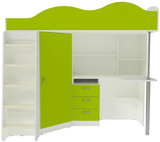 Кровать чердак Пионер включает в себя: Компьютерный стол с множеством стеллажей Тумба с ящиками для письменных принадлежностей Небольшой, но глубокий шкафчик для одежды и обуви, стоящий под углом оснащён перекладиной для вешалок и полочками Деревянная лестница Бортик среднего размера, сделанный в форме волн, защитит ребёнка от случайных падений Качественные материалы и удачная комбинация цвета фасадов и основной конструкции, обеспечат безопасность, долговечность и сохранят привлекательный внешний вид. Сборка универсальная. Матрасы в стоимость не входят.Ваш ребенок по достоинству оценит комфорт, который несет вам кровать-чердак с рабочей зоной Пионер. Кровать чердак Пионер- это удобная и компактная мини детская комната для Вашего ребенка со спальным местом наверху и рабочей зоной внизу. Матрас для кровати вы можете приобрести отдельно в разделедетских матрасов.. на цветных фасадах светло-бежевая кромка. *Предприятие-изготовитель оставляет за собой право вносить изменения в конструкцию изделия с целью улучшения технологических и эксплутационных свойств мебели. *Ограничение по нагрузке на лестницу до 75 кг.