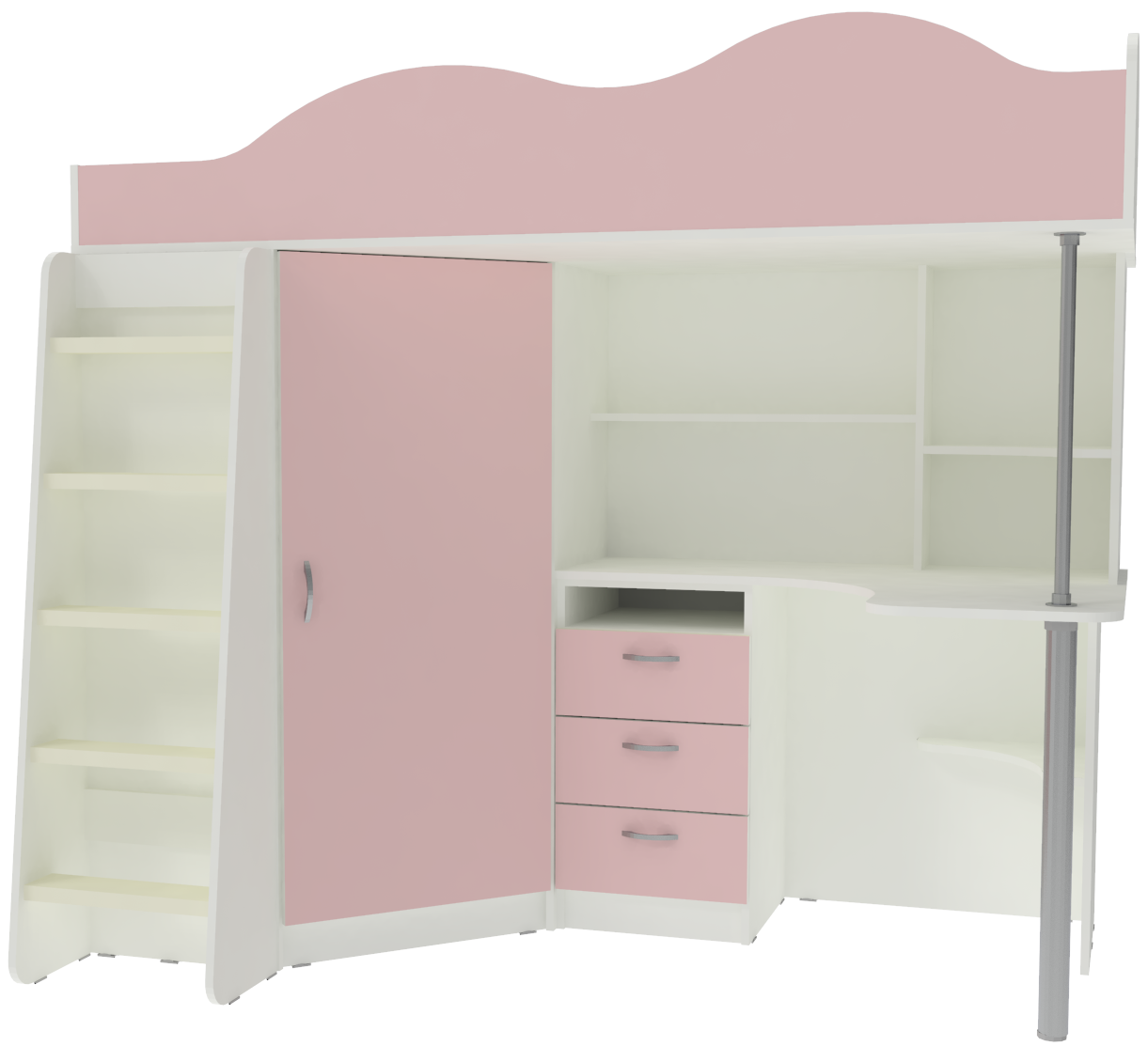 Вы можете купить Кровать-чердак КарИВи Пионер с деревянной лестницей Белый Розовый оптом в нашем магазине, предложим цену с оптовой скидкой.