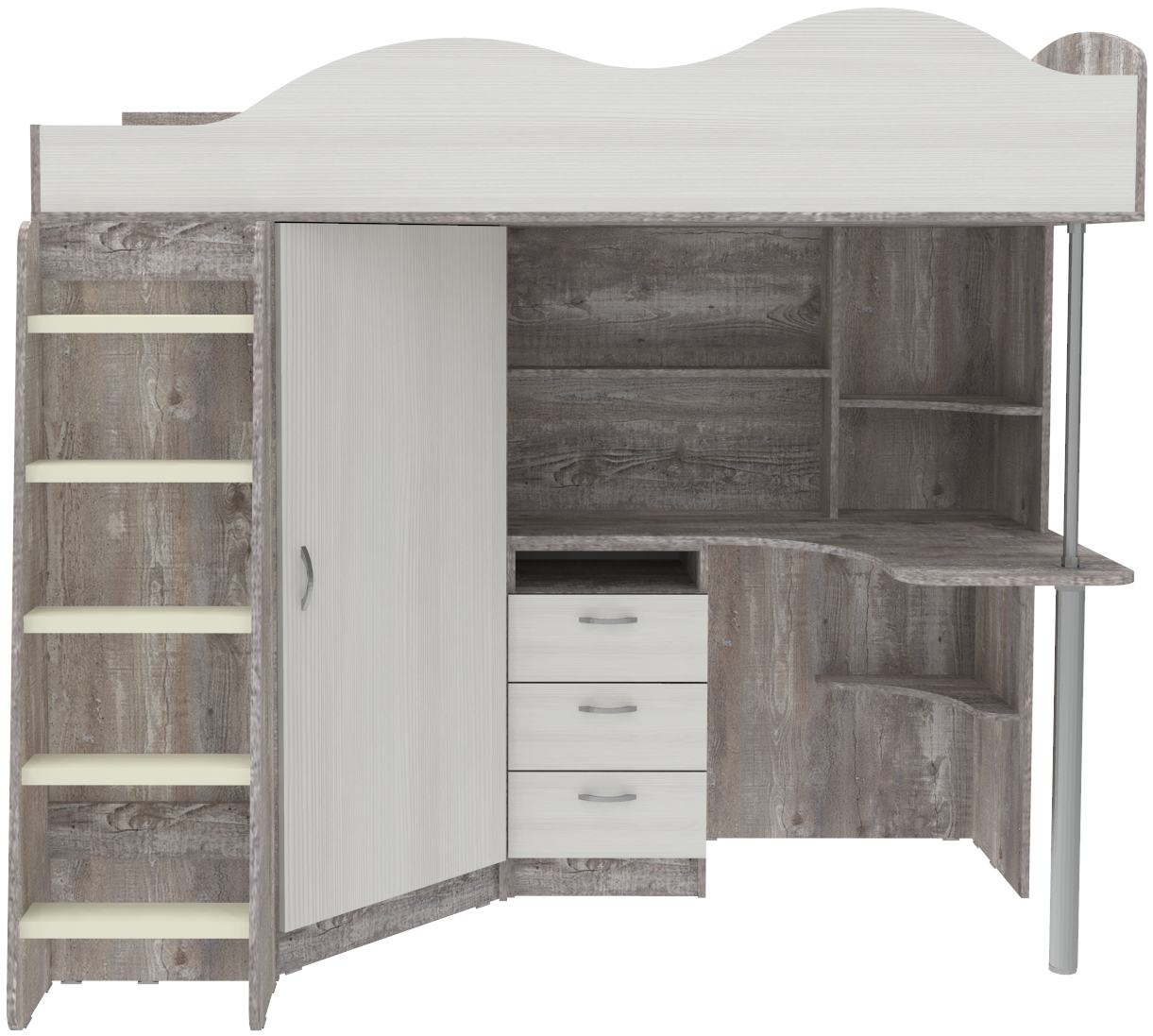 Вы можете купить Кровать-чердак КарИВи Пионер с деревянной лестницей Бетон Белое Дерево оптом в нашем магазине, предложим цену с оптовой скидкой.