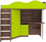 Вы можете купить Кровать-чердак КарИВи Пионер с деревянной лестницей Бодего Темный Лайм оптом в нашем магазине, предложим цену с оптовой скидкой.