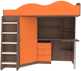 Кровать-чердак Пионер с деревянной лестницей Бодего Темный Оранжевый