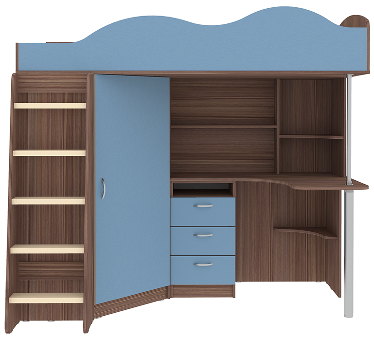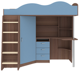 Кровать чердак Пионер включает в себя: Компьютерный стол с множеством стеллажей Тумба с ящиками для письменных принадлежностей Небольшой, но глубокий шкафчик для одежды и обуви, стоящий под углом оснащён перекладиной для вешалок и полочками Деревянная лестница Бортик среднего размера, сделанный в форме волн, защитит ребёнка от случайных падений Качественные материалы и удачная комбинация цвета фасадов и основной конструкции, обеспечат безопасность, долговечность и сохранят привлекательный внешний вид. Сборка универсальная. Матрасы в стоимость не входят.Ваш ребенок по достоинству оценит комфорт, который несет вам кровать-чердак с рабочей зоной Пионер. Кровать чердак Пионер- это удобная и компактная мини детская комната для Вашего ребенка со спальным местом наверху и рабочей зоной внизу. Матрас для кровати вы можете приобрести отдельно в разделедетских матрасов.. на цветных фасадах светло-бежевая кромка. *Предприятие-изготовитель оставляет за собой право вносить изменения в конструкцию изделия с целью улучшения технологических и эксплутационных свойств мебели. *Ограничение по нагрузке на лестницу до 75 кг.