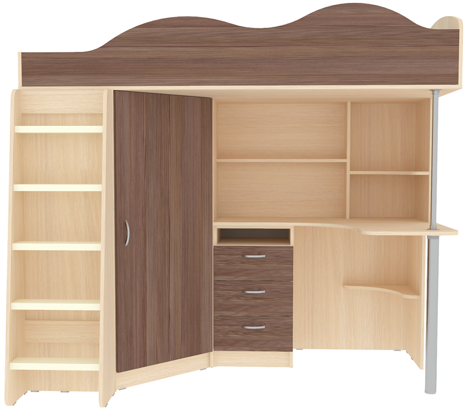Кровать чердак Пионер включает в себя: Компьютерный стол с множеством стеллажей Тумба с ящиками для письменных принадлежностей Небольшой, но глубокий шкафчик для одежды и обуви, стоящий под углом оснащён перекладиной для вешалок и полочками Деревянная лестница Бортик среднего размера, сделанный в форме волн, защитит ребёнка от случайных падений Качественные материалы и удачная комбинация цвета фасадов и основной конструкции, обеспечат безопасность, долговечность и сохранят привлекательный внешний вид. Сборка универсальная. Матрасы в стоимость не входят.Ваш ребенок по достоинству оценит комфорт, который несет вам кровать-чердак с рабочей зоной Пионер. Кровать чердак Пионер- это удобная и компактная мини детская комната для Вашего ребенка со спальным местом наверху и рабочей зоной внизу. Матрас для кровати вы можете приобрести отдельно в разделедетских матрасов.. на цветных фасадах светло-бежевая кромка. *Предприятие-изготовитель оставляет за собой право вносить изменения в конструкцию изделия с целью улучшения технологических и эксплутационных свойств мебели. *Ограничение по нагрузке на лестницу до 75 кг.