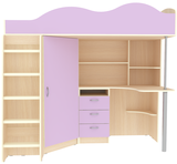 Кровать чердак Пионер включает в себя: Компьютерный стол с множеством стеллажей Тумба с ящиками для письменных принадлежностей Небольшой, но глубокий шкафчик для одежды и обуви, стоящий под углом оснащён перекладиной для вешалок и полочками Деревянная лестница Бортик среднего размера, сделанный в форме волн, защитит ребёнка от случайных падений Качественные материалы и удачная комбинация цвета фасадов и основной конструкции, обеспечат безопасность, долговечность и сохранят привлекательный внешний вид. Сборка универсальная. Матрасы в стоимость не входят.Ваш ребенок по достоинству оценит комфорт, который несет вам кровать-чердак с рабочей зоной Пионер. Кровать чердак Пионер- это удобная и компактная мини детская комната для Вашего ребенка со спальным местом наверху и рабочей зоной внизу. Матрас для кровати вы можете приобрести отдельно в разделедетских матрасов.. на цветных фасадах светло-бежевая кромка. *Предприятие-изготовитель оставляет за собой право вносить изменения в конструкцию изделия с целью улучшения технологических и эксплутационных свойств мебели. *Ограничение по нагрузке на лестницу до 75 кг.