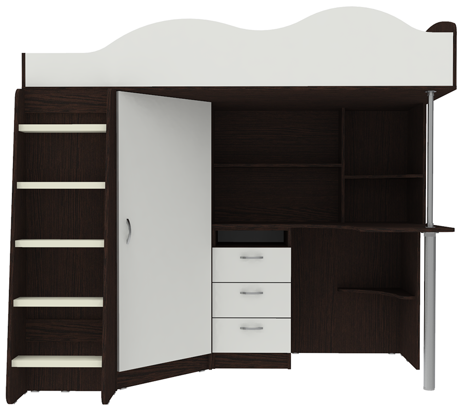 Вы можете купить Кровать-чердак КарИВи Пионер с деревянной лестницей Венге Белый оптом в нашем магазине, предложим цену с оптовой скидкой.
