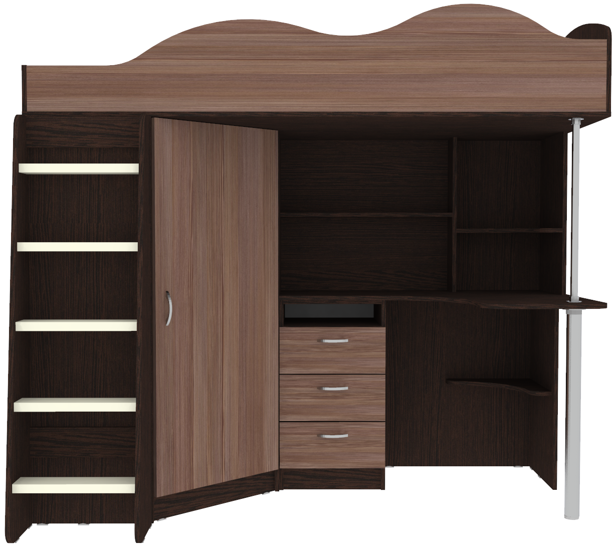 Вы можете купить Кровать-чердак КарИВи Пионер с деревянной лестницей Венге Бодего Темный оптом в нашем магазине, предложим цену с оптовой скидкой.