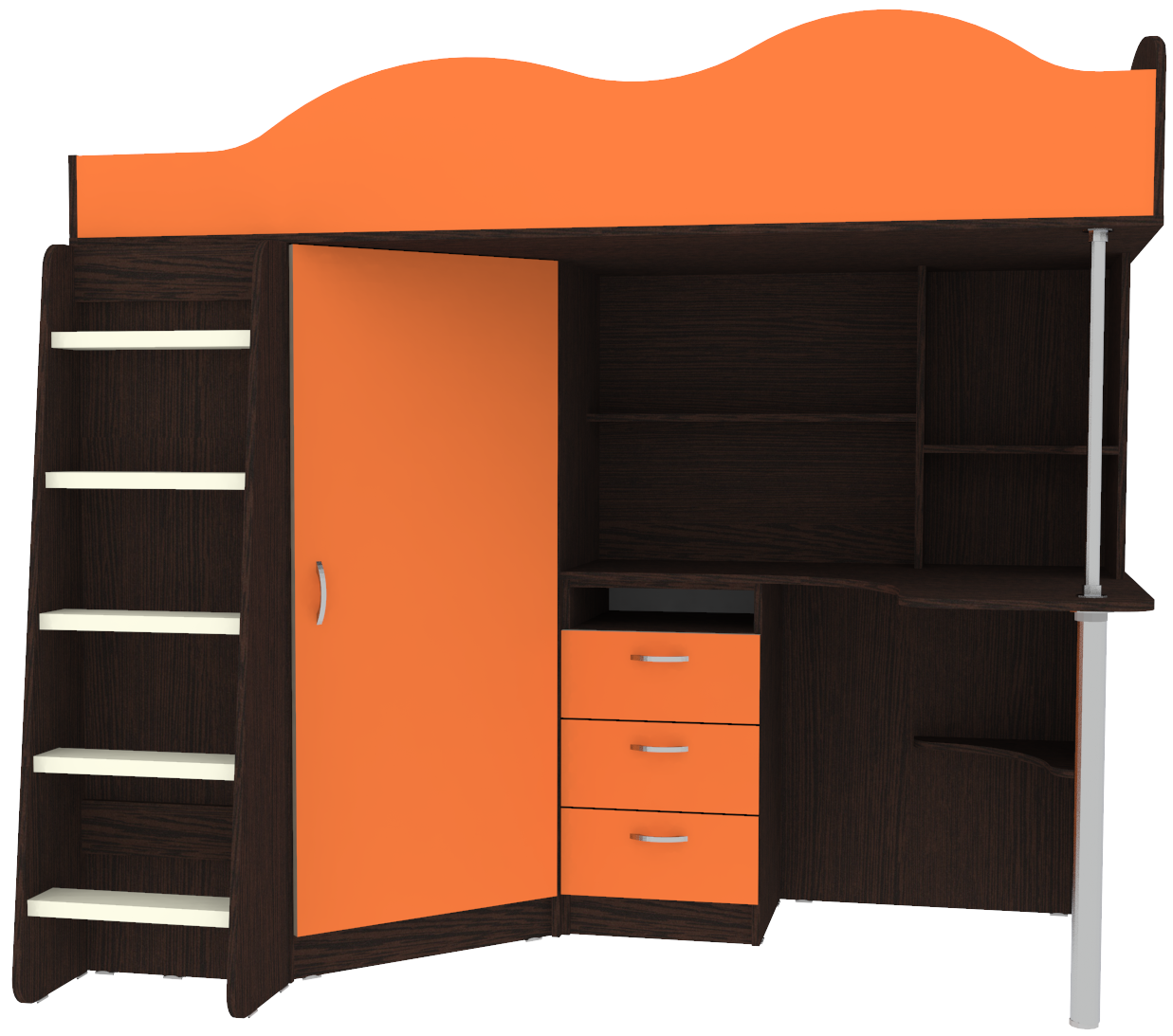 Вы можете купить Кровать-чердак КарИВи Пионер с деревянной лестницей Венге Оранжевый оптом в нашем магазине, предложим цену с оптовой скидкой.