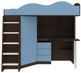 Вы можете купить Кровать-чердак КарИВи Пионер с деревянной лестницей Венге Светло-синий, голубой оптом в нашем магазине, предложим цену с оптовой скидкой.