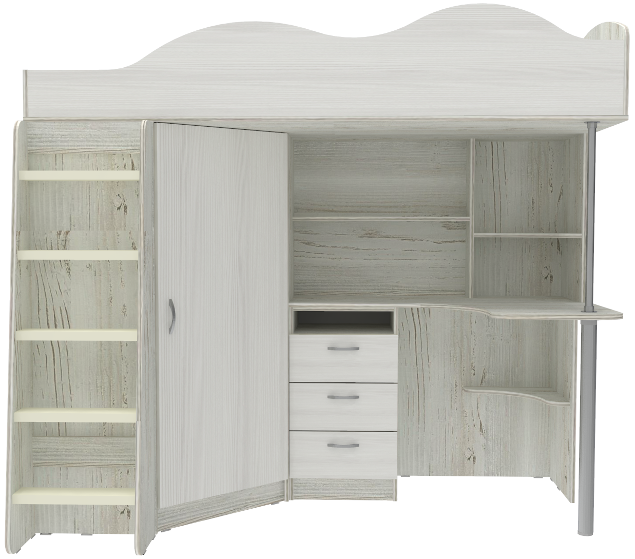 Вы можете купить Кровать-чердак КарИВи Пионер с деревянной лестницей Винтерберг Белое Дерево оптом в нашем магазине, предложим цену с оптовой скидкой.