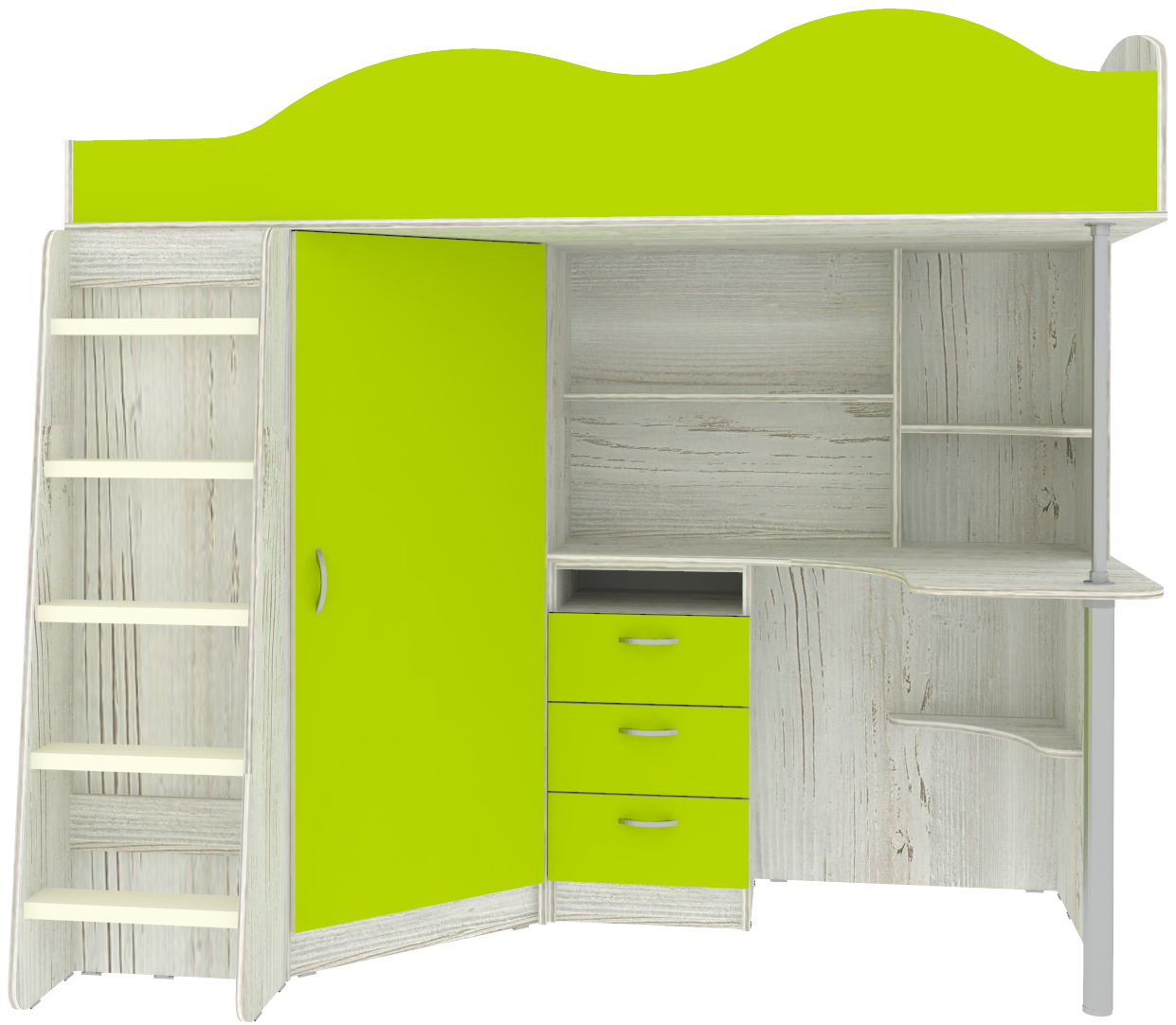 Кровать чердак Пионер включает в себя: Компьютерный стол с множеством стеллажей Тумба с ящиками для письменных принадлежностей Небольшой, но глубокий шкафчик для одежды и обуви, стоящий под углом оснащён перекладиной для вешалок и полочками Деревянная лестница Бортик среднего размера, сделанный в форме волн, защитит ребёнка от случайных падений Качественные материалы и удачная комбинация цвета фасадов и основной конструкции, обеспечат безопасность, долговечность и сохранят привлекательный внешний вид. Сборка универсальная. Матрасы в стоимость не входят.Ваш ребенок по достоинству оценит комфорт, который несет вам кровать-чердак с рабочей зоной Пионер. Кровать чердак Пионер- это удобная и компактная мини детская комната для Вашего ребенка со спальным местом наверху и рабочей зоной внизу. Матрас для кровати вы можете приобрести отдельно в разделедетских матрасов.. на цветных фасадах светло-бежевая кромка. *Предприятие-изготовитель оставляет за собой право вносить изменения в конструкцию изделия с целью улучшения технологических и эксплутационных свойств мебели. *Ограничение по нагрузке на лестницу до 75 кг.