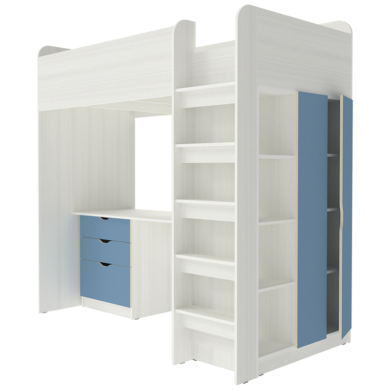 Вы можете купить Кровать-чердак КарИВи Polini Simple с письменным столом и Шкаф КарИВиом Белое Дерево Светло-синий, голубой оптом в нашем магазине, предложим цену с оптовой скидкой.