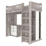 Кровать-чердак Polini Simple с письменным столом и шкафом Бетон Белое Дерево