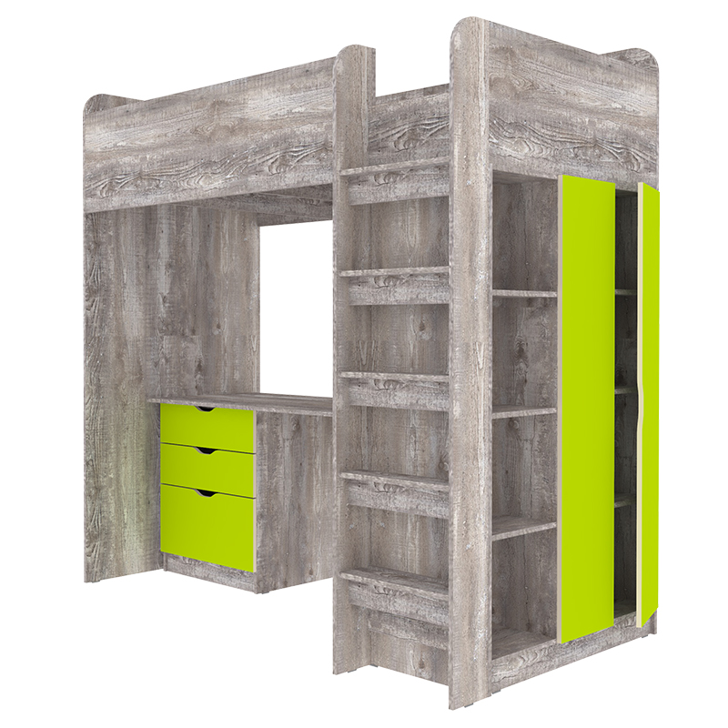 Кровать-чердак Polini Simple с письменным столом и шкафом Бетон Лайм
